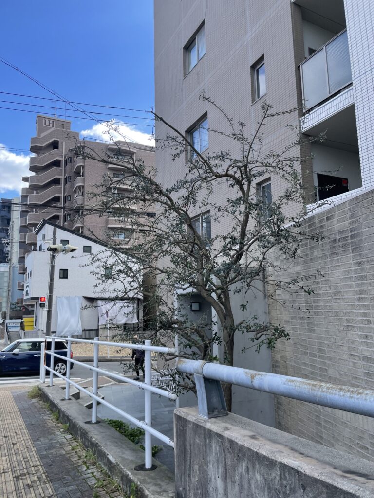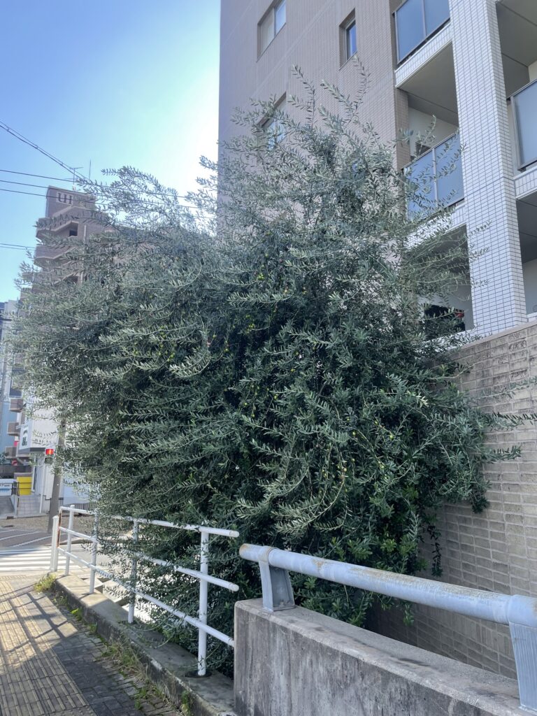 名古屋市内のマンション敷地内で、高さ約3.5mのオリーブを剪定しました。