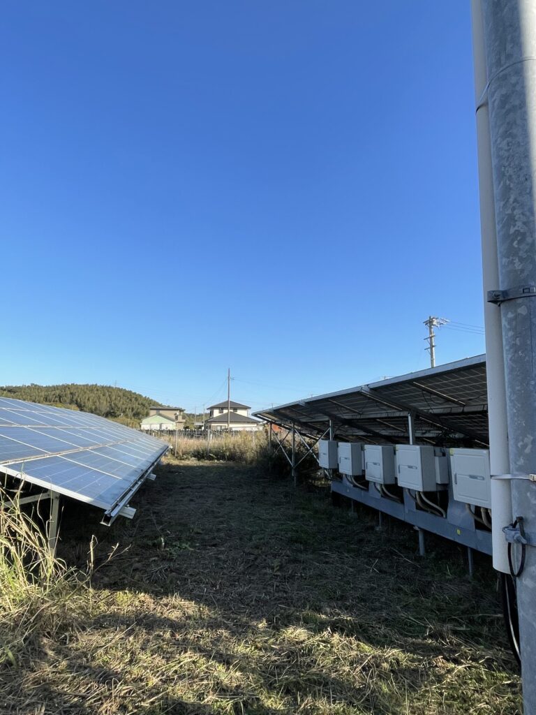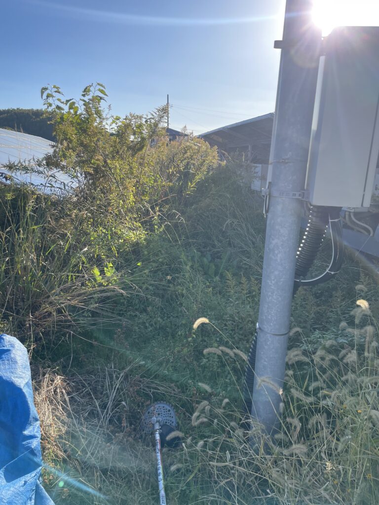 パネルとパネルの“あいだ”に伸びた草の草刈りを行いました!