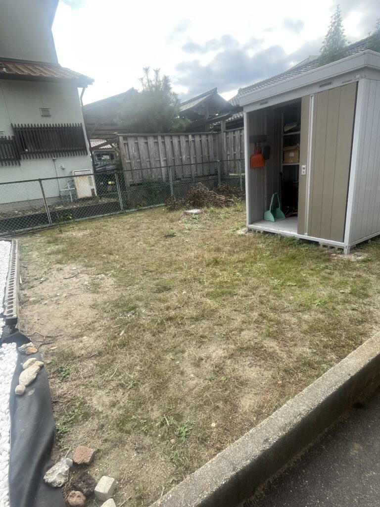 草刈り機を使って作業したので、現場に入ってからはあっという間に完了。通路や倉庫の際までしっかり刈りこんで、見た目もスッキリ、今後の管理もしやすい状態にできました。